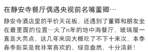 晒出的偶遇照中,与朋友们聚餐的董卿完全没把自己当名人,没有刻意遮掩的口罩墨镜,她就那样安安静静地坐在靠窗的位置,融入市井烟火里,却又自带一股让人无法忽视的气质。