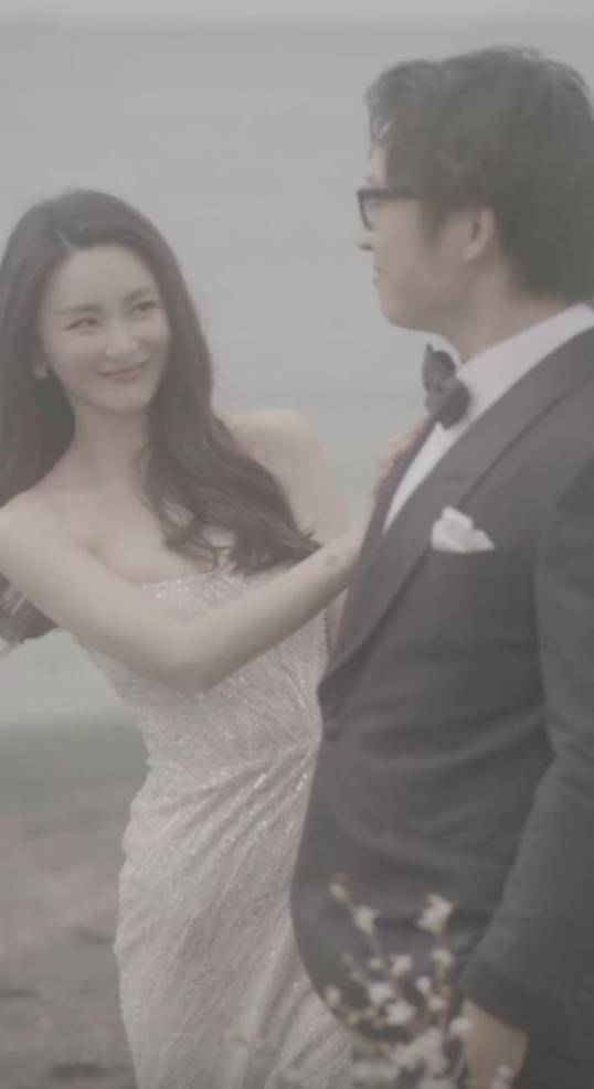 而一旁环抱裕美的林作,则是一身黑色西装打扮,照片中的两人正站在海边,摆出各种亲密动作,尽显恩爱。