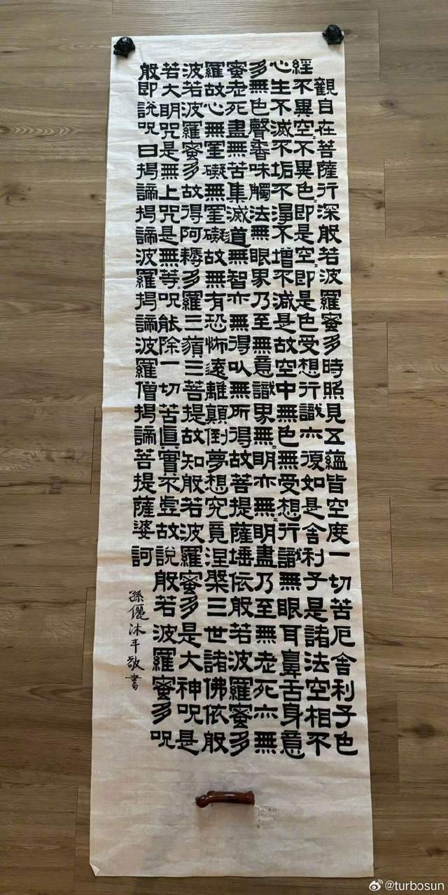 孙俪的书法还是相当不错的,其实书法不妄加评论,但对于这份坚持真的让人动容。很多人感叹孙俪近年新剧不少,工作强度可想而知,外加还要照顾两个孩子,居然还能一直坚持书法这个爱好。心经字数可不少,外加还是毛笔字,看孙俪晒出的照片,没有任何的改动,可见写字的时候要多认真和专心。能达到这种状态其实对于现在年轻人都是个挑战,孙俪照片中的一笔一划都尽显从容!