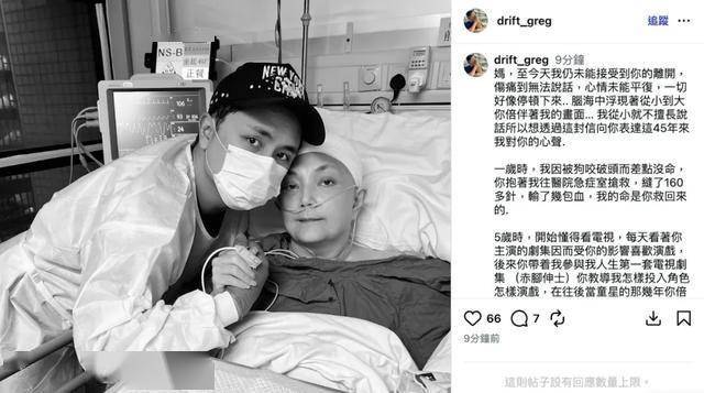 香港演员施明于本月21日因肺炎离世,享年74岁。儿子李泳豪今天晚上在社交平台发文,除了描述自己的哀痛之情,更说了不少施明作为一个母亲的伟大。李泳豪全文如下:妈,至今天我仍未