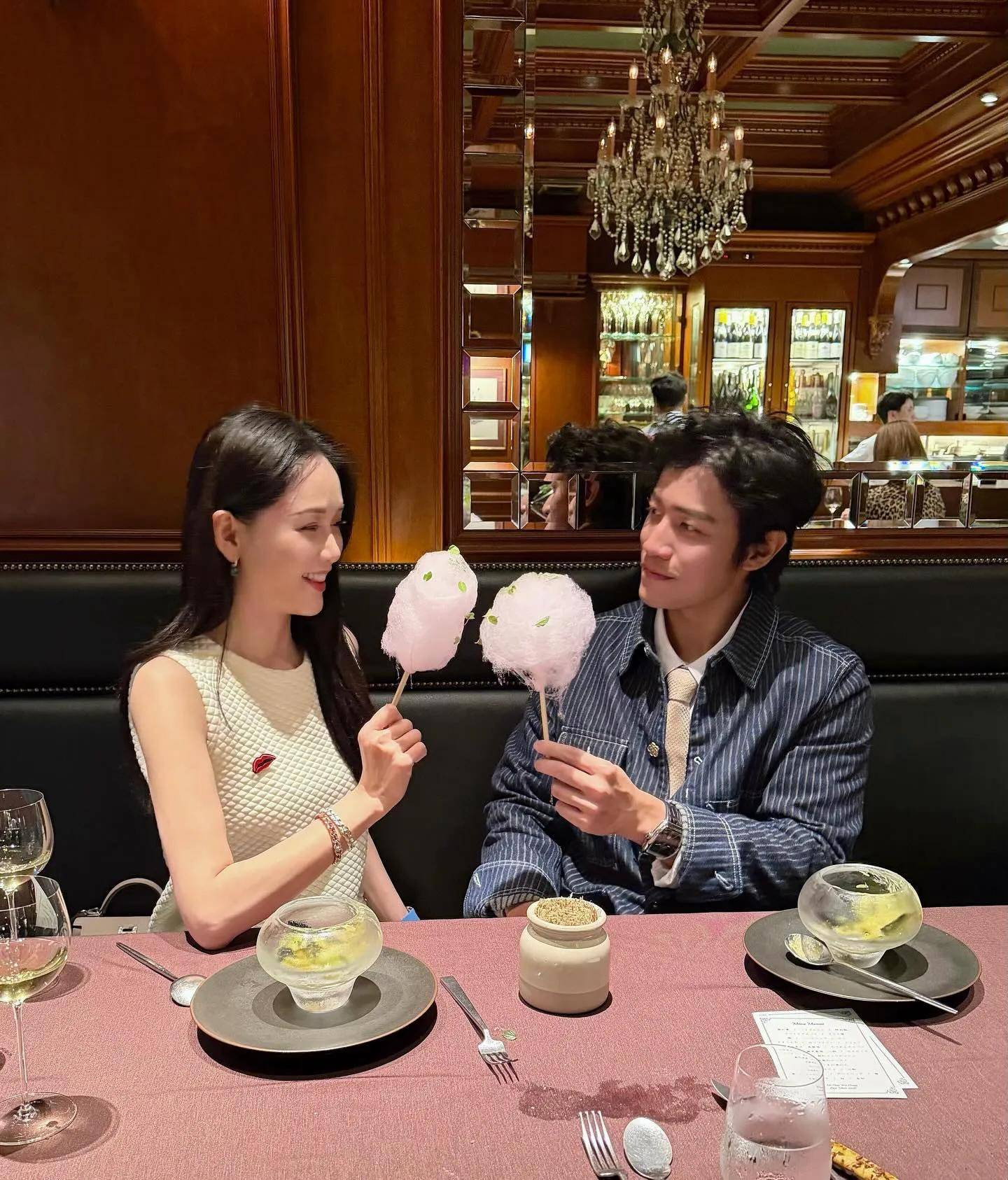 两人还拿着棉花糖一起合影,童心未泯好可爱的。陈乔恩面带甜美笑容,Alan看老婆的眼神好有爱,感觉满满的爱意都要溢出来了,结婚4年两人依然好甜呀。