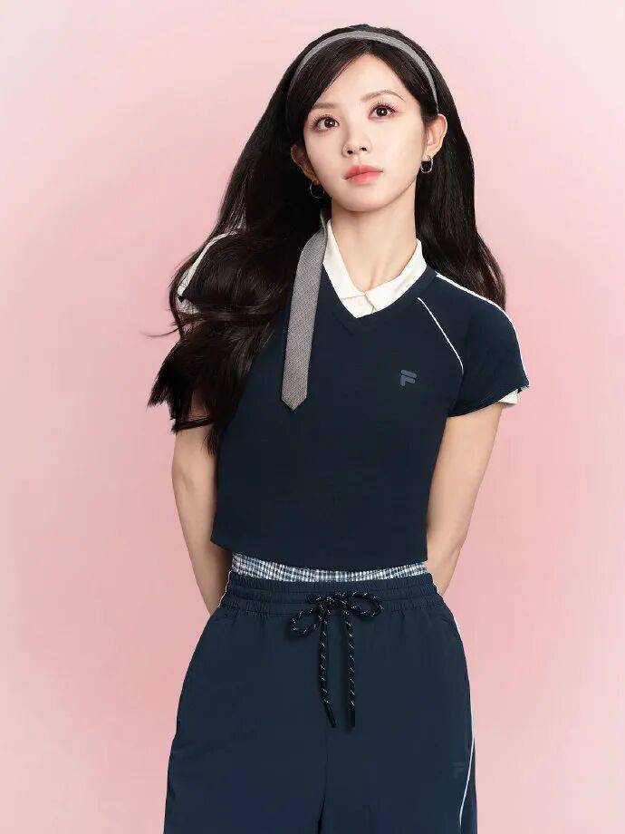 镜头前,她通过克制神态强化冷冽氛围,如FILA海报中利落眼神与简约造型结合,疏离感与高级质感并存。