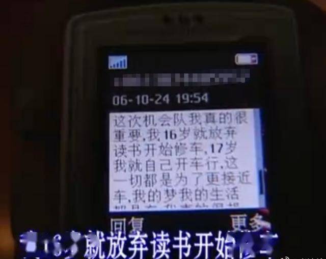2006 年,19岁的他得知湖南卫视摩托车节目组要来当地采访,竟冒雨骑了100多公里,狂追采访车3小时,浑身湿透、满脸泥水,对着车窗高喊:“我会修车,我想进车队,我可以无偿干活!”