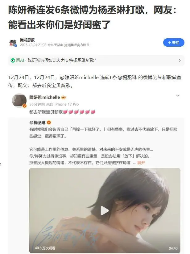 网友当时都在说,这是杨在给闺蜜分担火力。