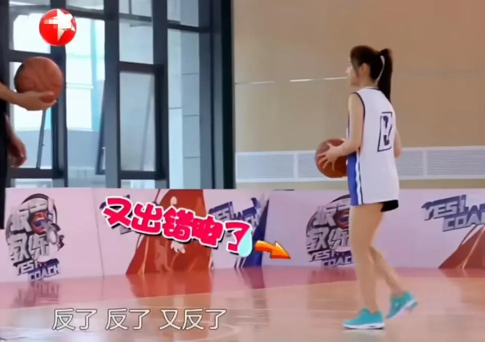 其他嘉宾都能轻松运球,唯独陈妍希站在球场上,半天分不清左右脚。