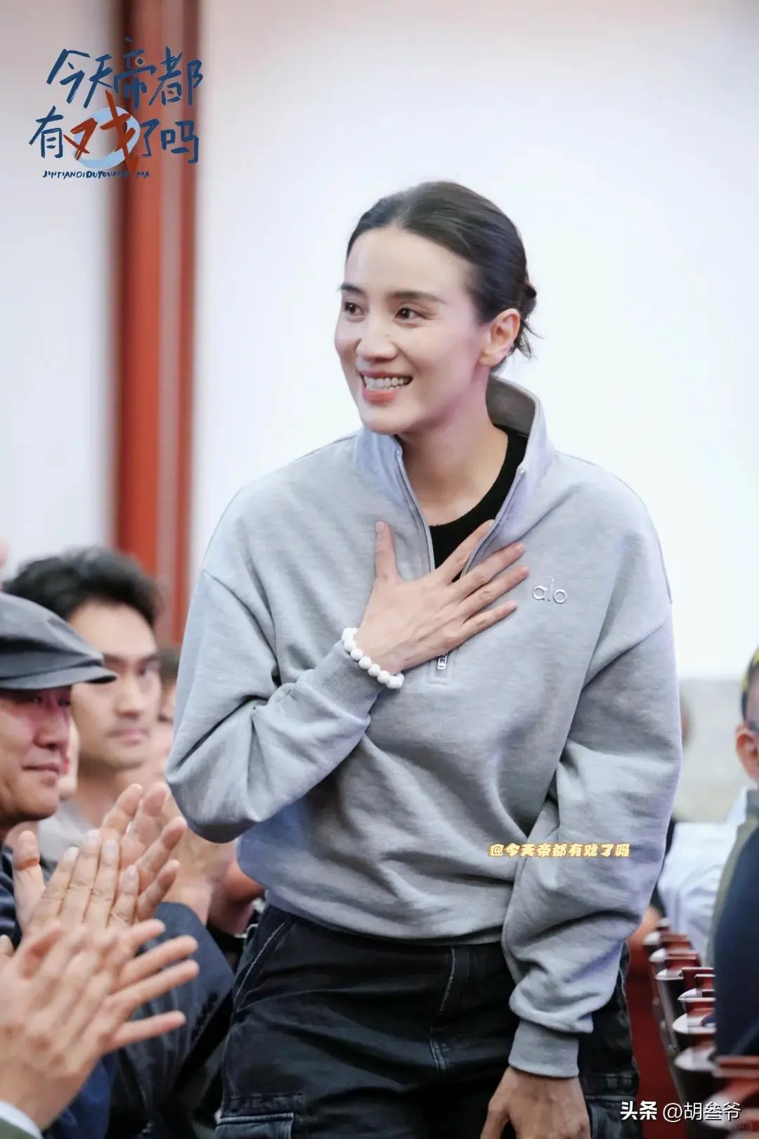 一头规规矩矩的短发,配上一副眼镜,瞬间让人梦回她拍摄《县委大院》的时候。