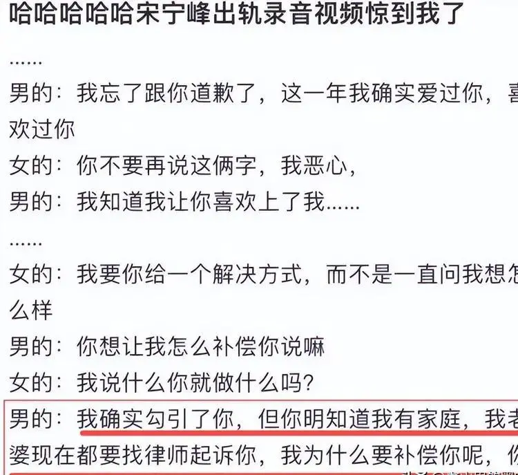 就在几天前,宋宁峰被曝婚内出轨,2025年年初工作酒局上主动勾引Q女士,谎称和张婉婷婚姻名存实亡,承诺会离婚娶对方,不正当关系持续了一年多。
