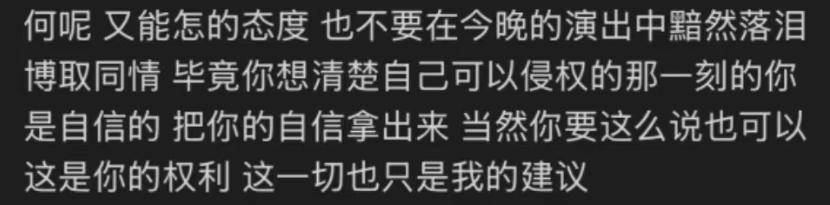李荣浩的发文通篇都能感觉到愤怒,到了不把事情闹大不罢休的地步,不顾同行颜面,带她大名公开喊话、放实锤证据,还用上了 “强行侵权”的说法。