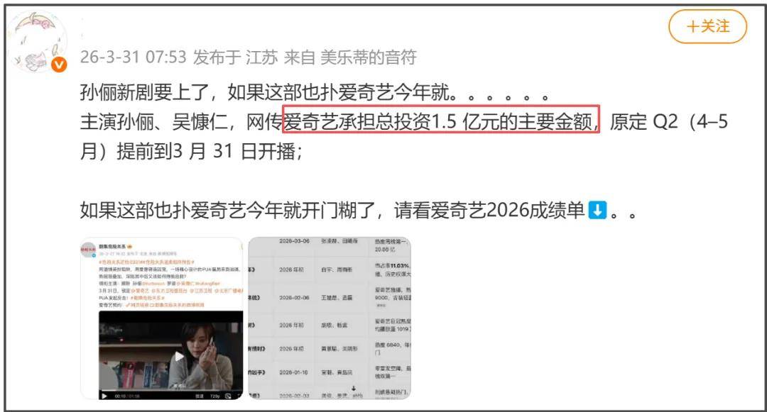 据了解,《危险关系》是匆忙定档,在开播前期的宣传力度并不大,堪称空降播出。大家本以为在开播之后宣传会增多,但并没有,开播至今男女主演都没有合体宣传过。与此同时,片方对女主的相关宣传力度明显大于男主。官方账号发布的视频中,大部分都是孙俪相关的花絮或者片段。