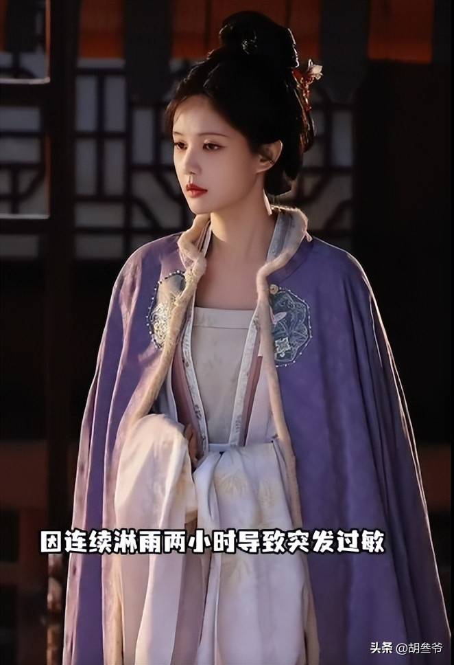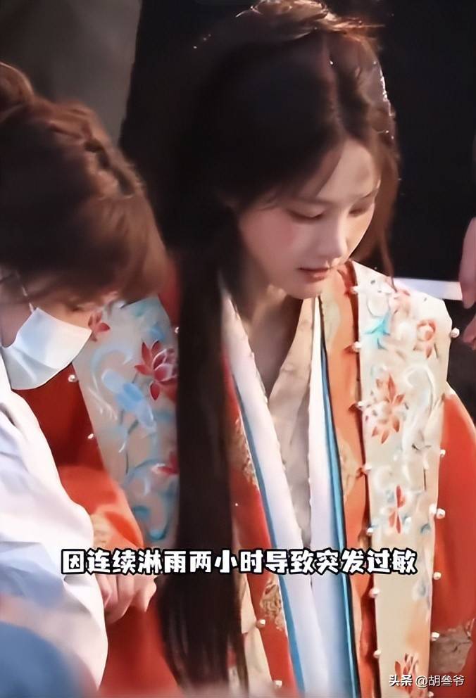 3月23日,剧组拍淋雨戏,她在冷水里整整淋了两个小时,拍完当场就急性过敏,脸肿、身上起红疹,连夜去急诊输液,手背上留下好几个针孔。