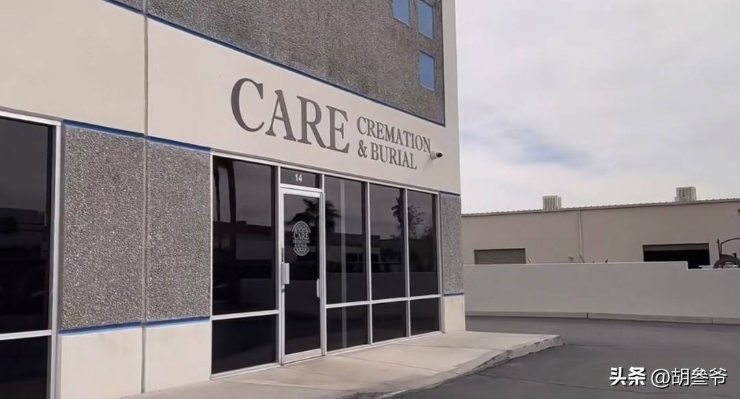 镜头扫过车身后方,一行英文“CARE CREMATION&BURIAL”清晰可见,翻译过来就是火葬丧葬服务。