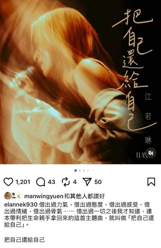 老公 Oscar 一如既往调皮地留言支持太太:“借你五块钱,什么时候还?”两人这种搞笑的相处模式,江若琳也十分受用。她感谢老公用这种带点 “激将法” 的方式陪伴自己,为她带来正面能量,陪她走出低谷:“现在的我,才真正属于我自己!”