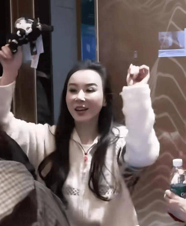 电梯门打开的那一刻,萧蔷瞬间露出开心的笑容,高高举起手中的玩偶,大声喊道:"耶!"进入电梯后,她还不忘对着镜头挥手,一副激动又兴奋的模样,活力满满,完全不像一位年过半百的艺人。