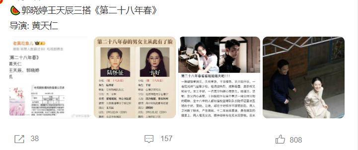 从传出的消息上看,郭晓婷和王天辰将三度搭档出演《第二十八年春》,这部剧的名字,有些像年代剧,实际上却是现偶剧。