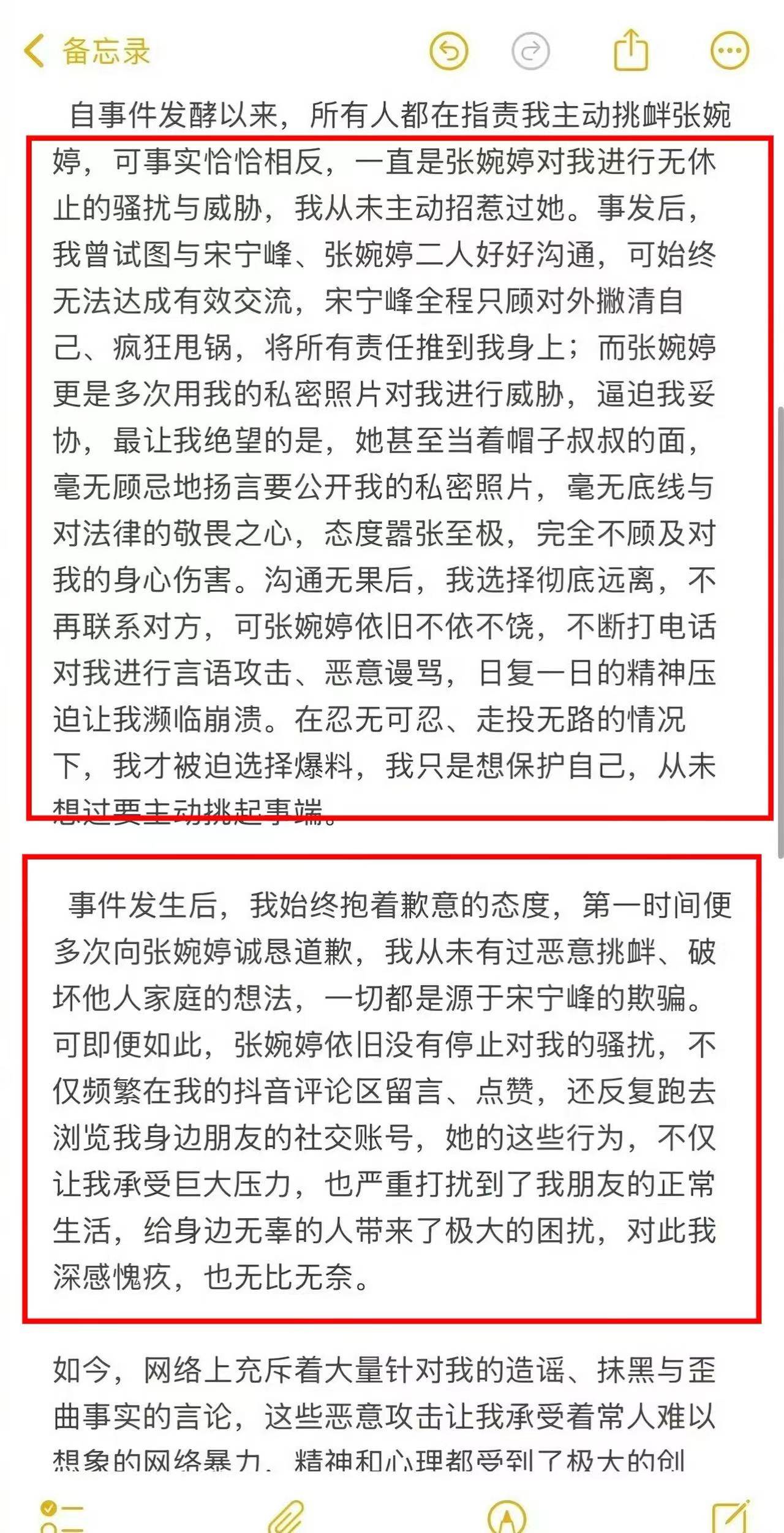 强调自己是在不堪网络暴力、持续骚扰和人身攻击的情况下,为自保才选择公开回应 ;