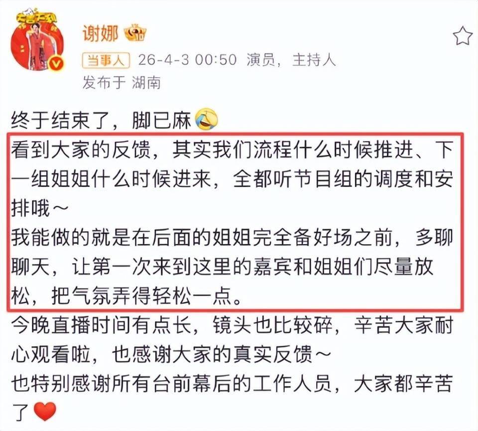 要知道这是直播、不是开party,谢娜还是主持人,竟然就大咧咧地加入其中,让全场完全进入混乱的聊天模式。