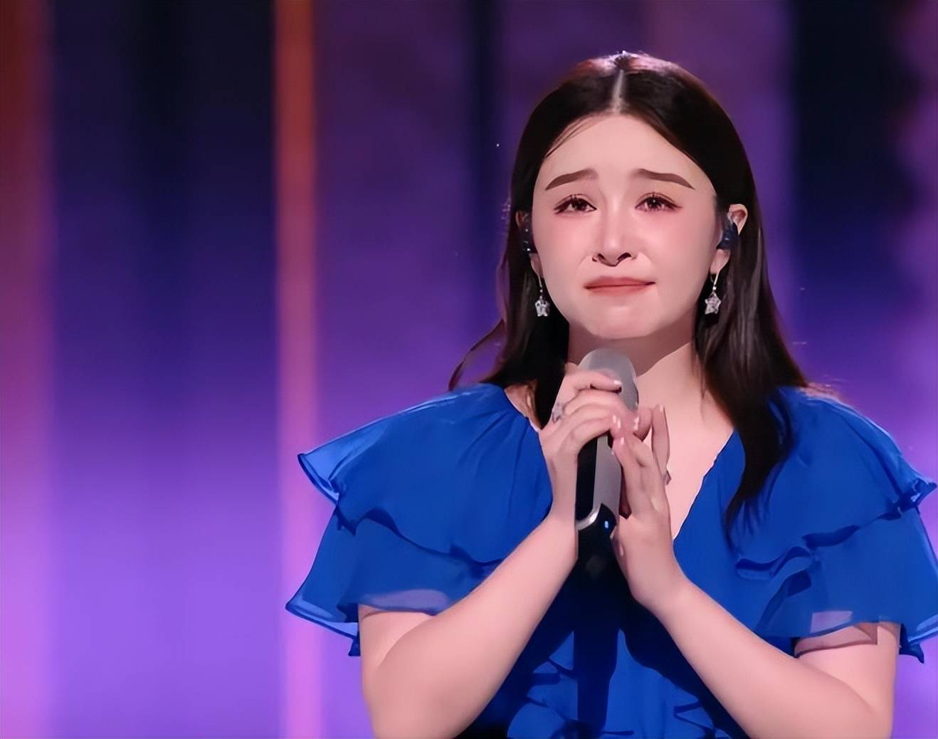 她死死捏着话筒,强忍着眼泪,硬是把这首歌唱完了。