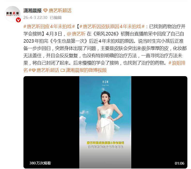 4 月 3 号最新消息。唐艺昕终于开口了。一句身体出了问题,直接撕开她这四年近乎消失的遮羞布。