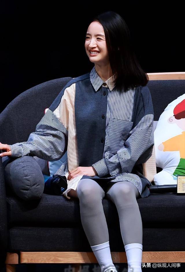 她当天穿了一件简单的米白色针织衫和深色长裤,头发随意地挽在脑后,露出饱满的额头。