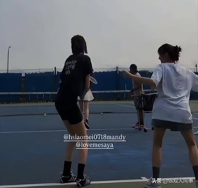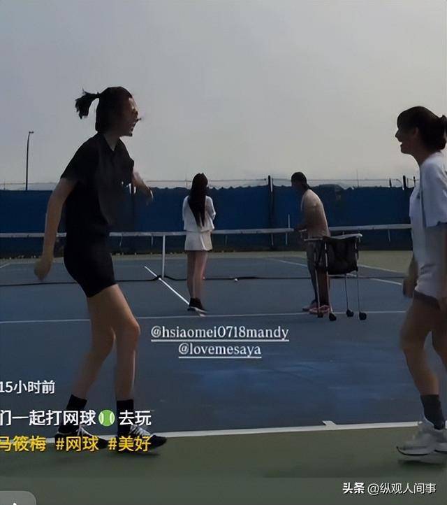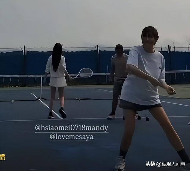 跟她一起打球的还有多位好友,其中有男性友人也有女性友人,众人配合默契,时不时还会对视交流,气氛看起来十分融洽。
