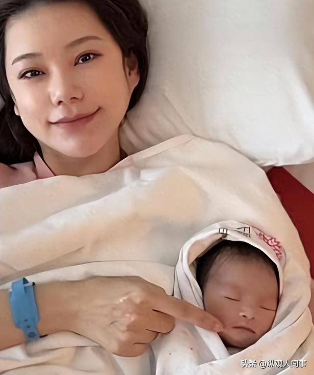 生产当天,照片里的她躺在床上,身上盖着浅色的被子,怀里抱着刚出生的宝宝,脸上带着笑意,精神状态好得惊人。