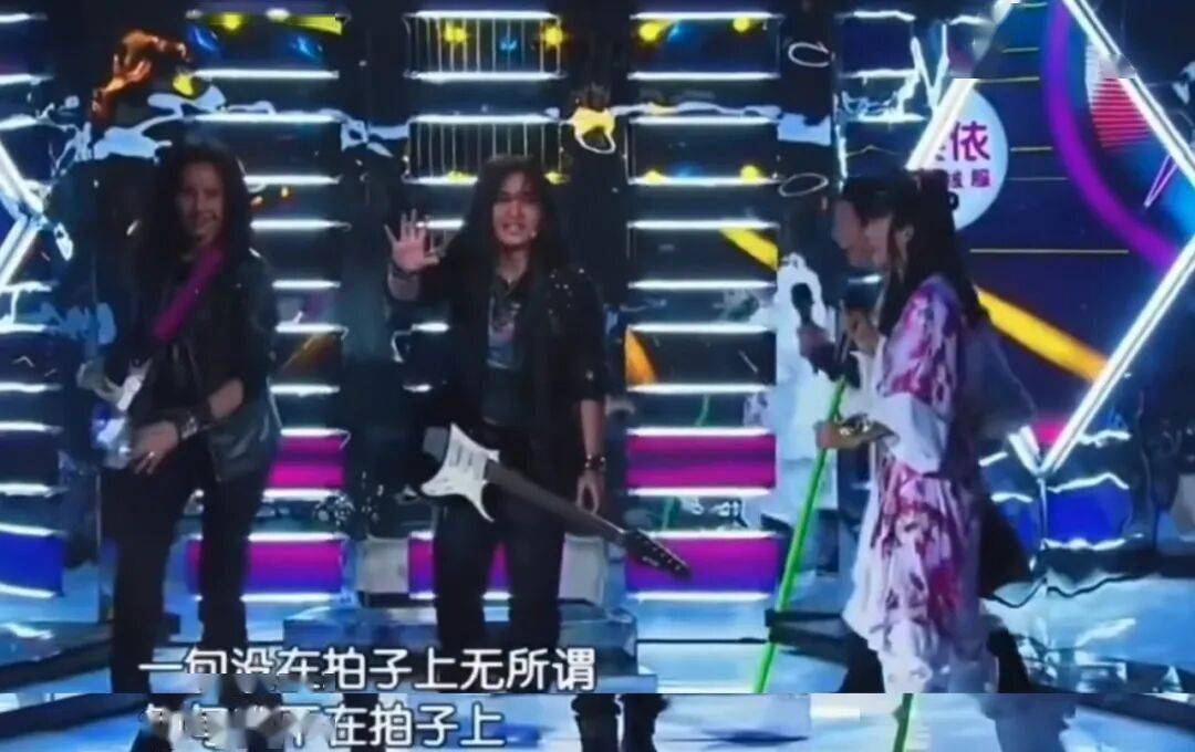 演唱结束的pose是俩人摇滚式捶地,贾玲锤到手疼,何炅上台接的第一句话让观众瞬间爆笑: