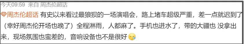 当然了,如果仅仅是身体机能下降,网友也许还会心疼周杰伦,然而周杰伦演唱会的槽点远不止周杰伦本人。