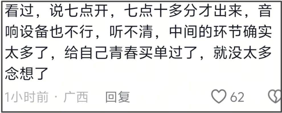 如果说年纪大了、唱不上去了,属于岁月不饶人,舞美落后、音响糟糕,就有敷衍观众的嫌疑了。