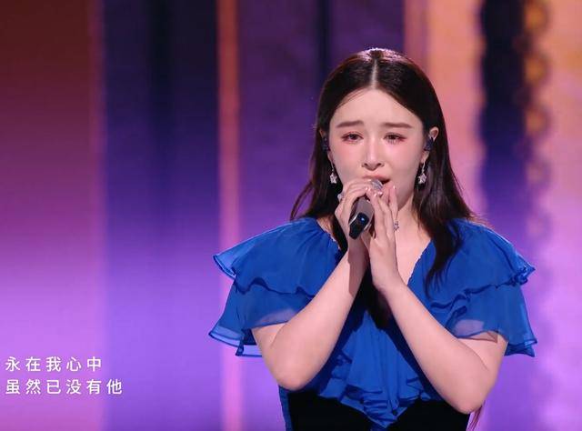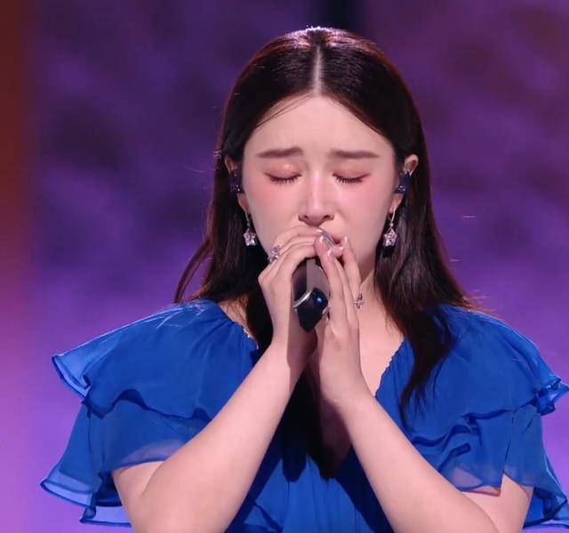 可唱到“看世事无常,看沧桑变化”时,她突然哽咽失声,眼泪瞬间滑落,身体控制不住地颤抖,气息也彻底乱了。