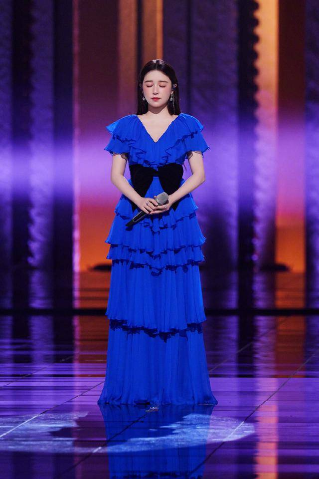 当天晚上,阚清子穿着一件蓝色连衣裙,选择全开麦无垫音,唱了一首《爱的代价》。