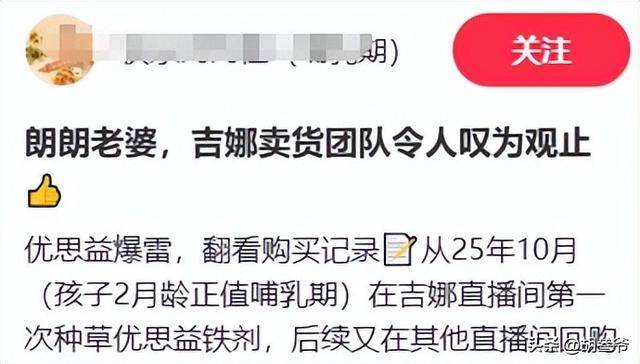 这时候有位网友才发现,吉娜在2025年10月就通过小某书直播间、商品橱窗大力推广优思益铁剂。