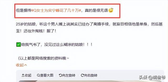 4月4日,热搜被#Q女士为宋宁峰花了几十万#的话题刷屏。