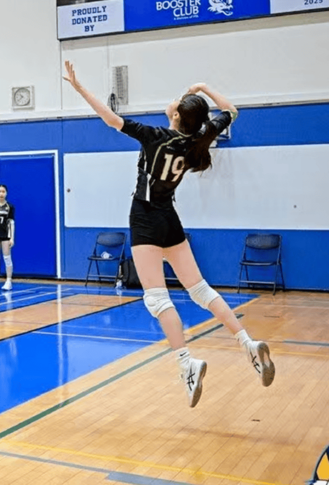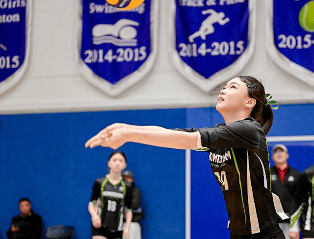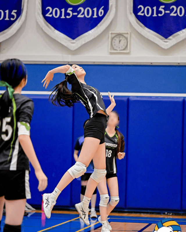 起跳扣杀的瞬间,本本的身体完全腾空,手臂高高扬起,动作舒展又标准,专业感拉满,完全看不出是业余赛场的少年选手。无论是肌肉线条、弹跳高度,还是赛场专注度,都展现出了远超年龄的成熟与专业,让人很难不被这份青春的力量所打动