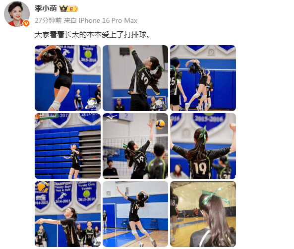 4月5日,前央视主持李小萌罕见在个人社交平台分享出女儿本本近况,晒出9张女儿打排球照的李小萌,她还配文写道:“大家看看长大的本本爱上了打排球”,言语间满是骄傲自豪。