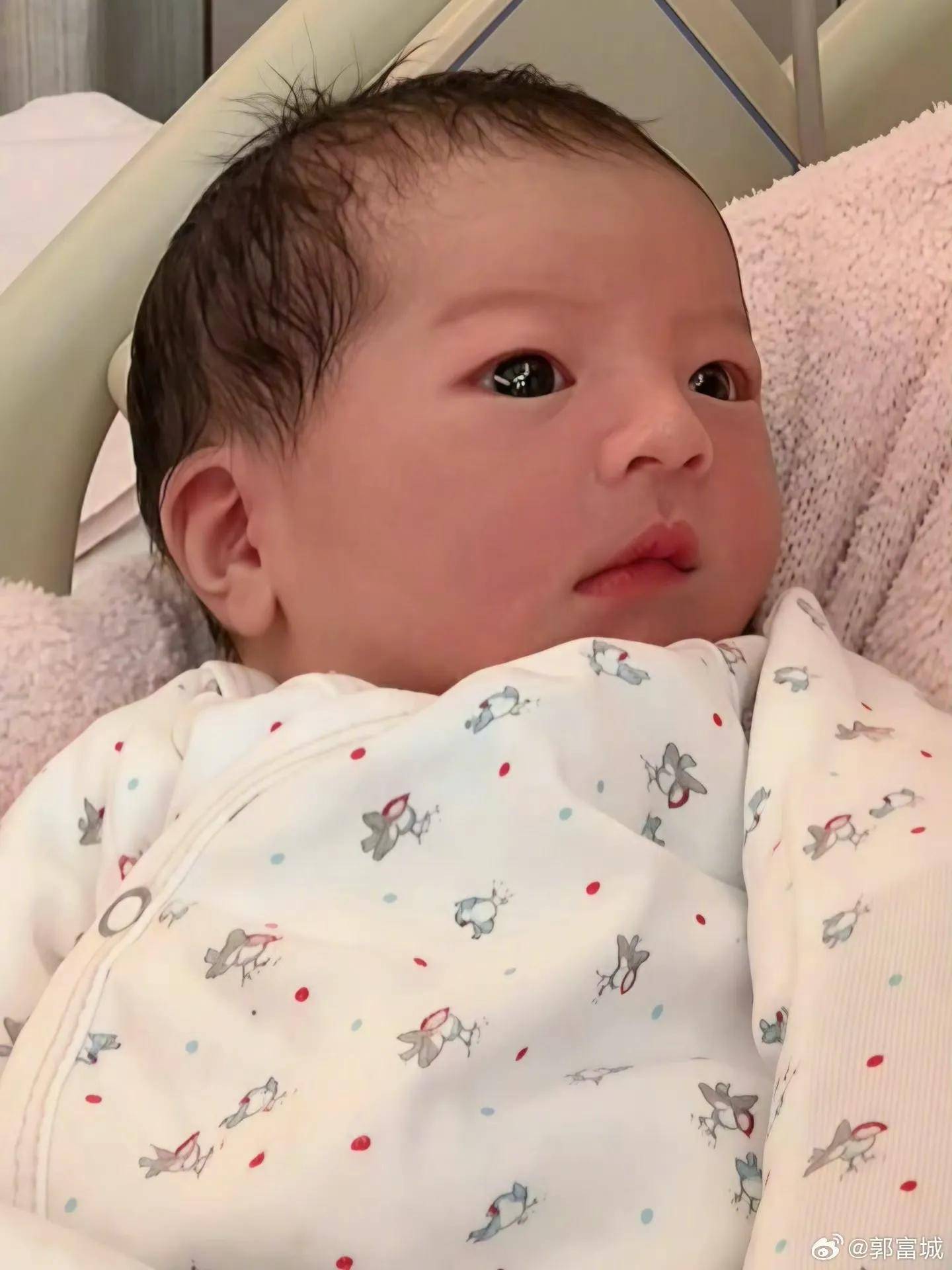 4月4日,郭富城老婆方媛在社交平台晒出带娃画面,三胎小女儿郭咏心软萌出镜,五个多月的她颜值好高好可爱。