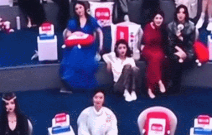 直播画面显示,在观看其他嘉宾表演时,孙怡直接将脚踩在了自己身前的椅子上,坐姿颇为“豪迈”,期间甚至还一度坐到了地上,直到发现镜头扫过,才匆忙坐回原位。这一幕被清晰记录下来,迅速在网络上炸开了锅。
