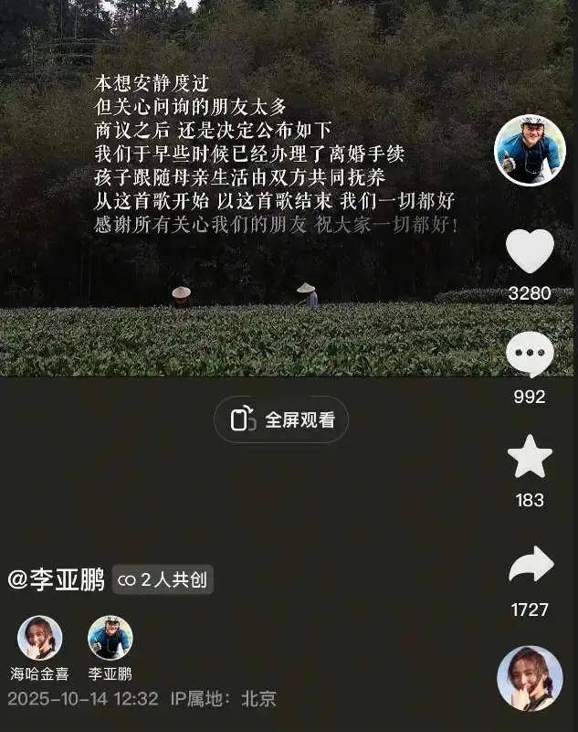最近曝光的一段李亚鹏与女儿的对话画面,温馨又充满爱意。李亚鹏耐心地解答女儿的小问题,画面中没有一丝离异家庭可能带来的隔阂,父女之间的互动充满了关怀与温暖。 从海哈金喜的访谈中可以看出,她对前夫李亚鹏并没有任何的怨言或指责。两人以一种成熟、理性的方式,处理着各自的生活与责任。这种分手后的友好关系,展现了他们超凡的格局和深厚的情感,不纠缠、不拖累,反而以最体面的方式证明了彼此的成全与释怀。