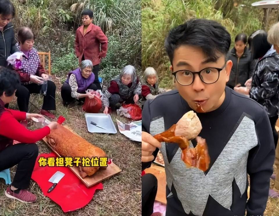 清明节,刷屏的不是哪位顶流的新恋情,也不是谁又翻车。是一位61岁的港星,蹲在山里泥地上,报纸一铺,手一伸,直接撕肉开吃。