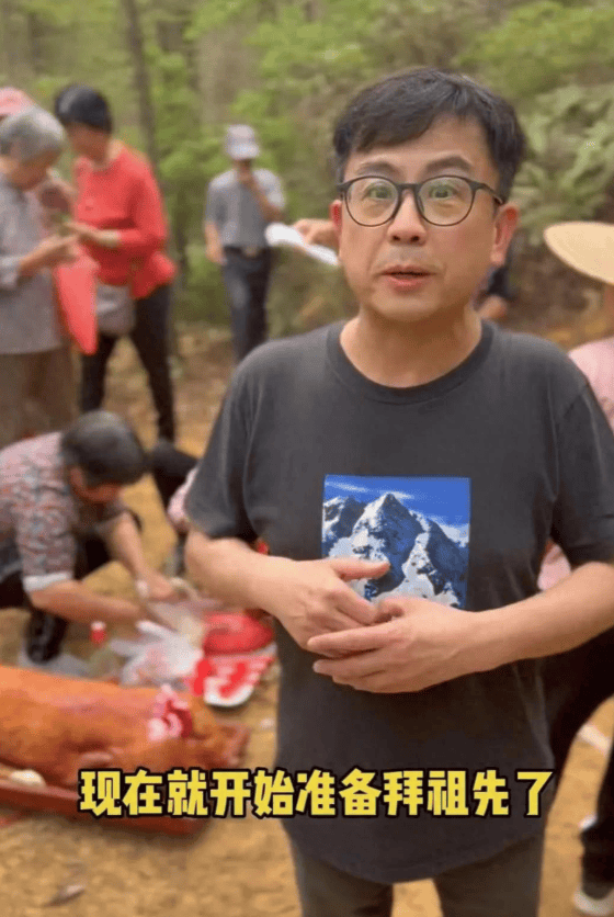 很多明星提“家乡”,像在讲公关稿。黄一山提“台山”,更像在说家里那条路、那口井、那片山。你看他祭祖的镜头,没豪华布置,没仪式摆拍,就是亲戚一群人,抬着烧猪上山,拜完坐地就吃。这不是“表演传统文化”,这更像一种习惯:到点就得回去,回去心里才踏实。