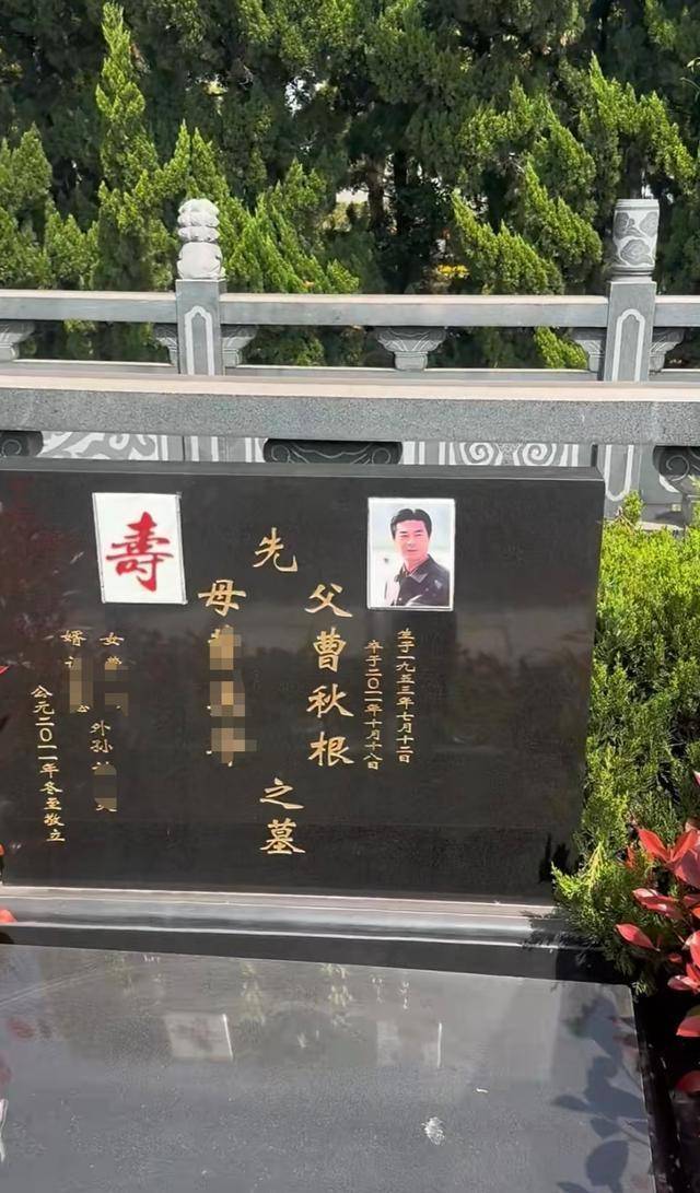 据网友分享的视频,他的墓地被打理得很好,干干净净的,附近有植物环绕,环境不错。仔细看发现,这是夫妻双穴,上面刻有他的照片、出生日期以及去世日期,还刻有他妻子、女儿、女婿和外孙的姓名。