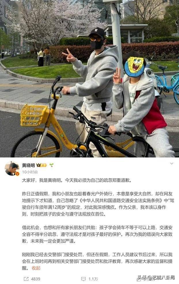 随后黄晓明火速删图并主动回应:“刚刚我已经去交警部门接受处罚,但还在假期,工作人员建议节后过来,所以我会在上班时间再到相关交警部门接受处罚和批评教育。”这场 “带娃翻车” 也成了全民普法现场,网友调侃 “再温馨也违法”。