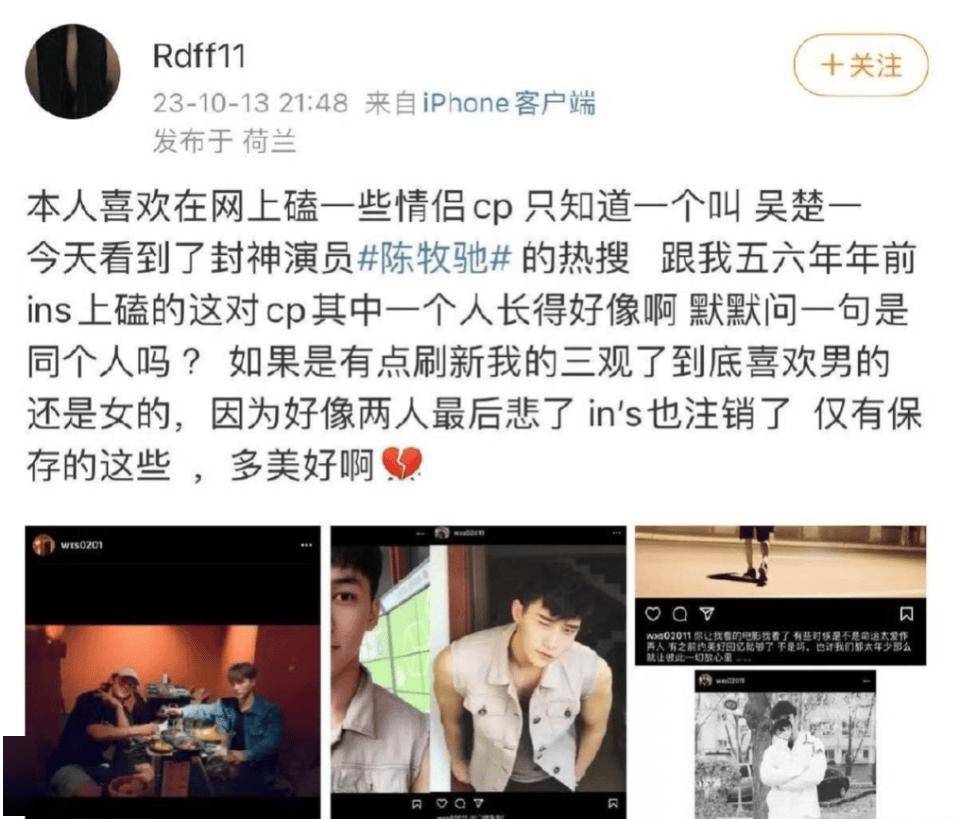 一开始,有位网友在网上发帖,称“本人喜欢嗑情侣CP,只知道其中一个叫吴楚一,今天看到封神演员陈牧驰的热搜,默默问一句是同个人吗?”