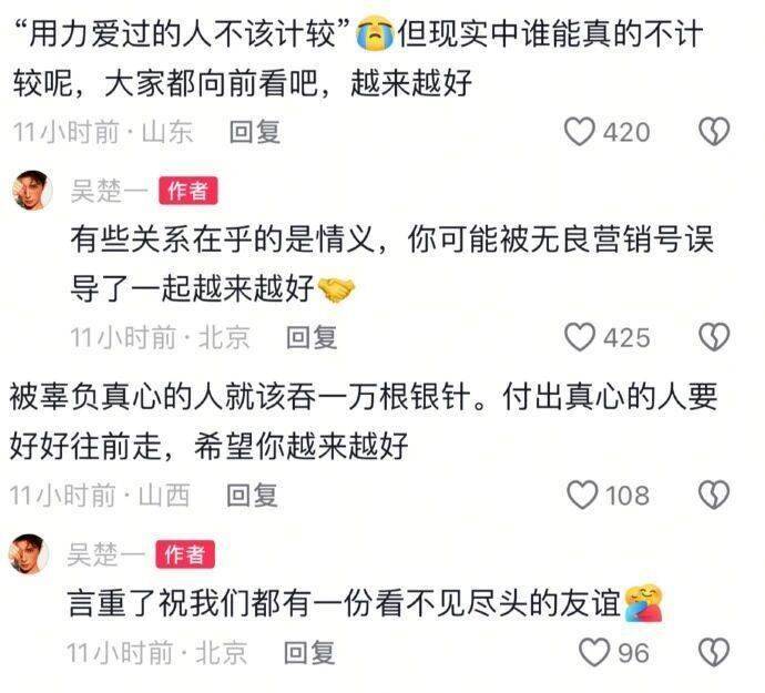 陈牧驰前妻这边发文让他改名,吴楚一则是下场回复了网友的评论。