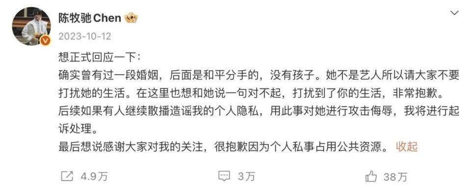 别人都没有什么背景,但陈牧驰却和剧组工作人员结婚了,难免会引起争议。不过,陈牧驰的反应很迅速,直接发微博回应闪婚闪离一事。