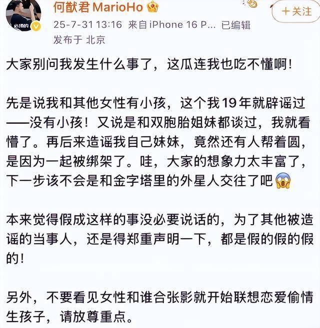 这场闹剧最诡异的地方,其实不在传闻本身,而在于何猷君截然不同的反应。