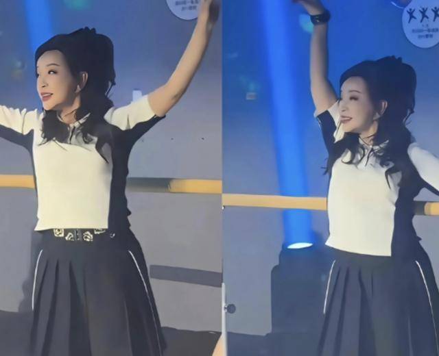 音乐方才一响,她便在舞台之上又唱又跳地舞动起来。