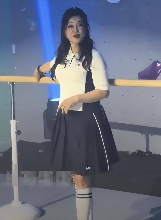 上半身乃是简单的白色Polo衫,下半身搭配着黑白拼色的百褶短裙,露出那细细的双腿,接着穿上白色的长筒袜以及芭蕾风格的运动鞋,这般的穿着,说她是17岁,是会有人相信的。