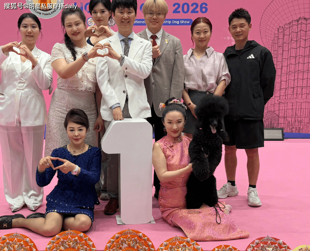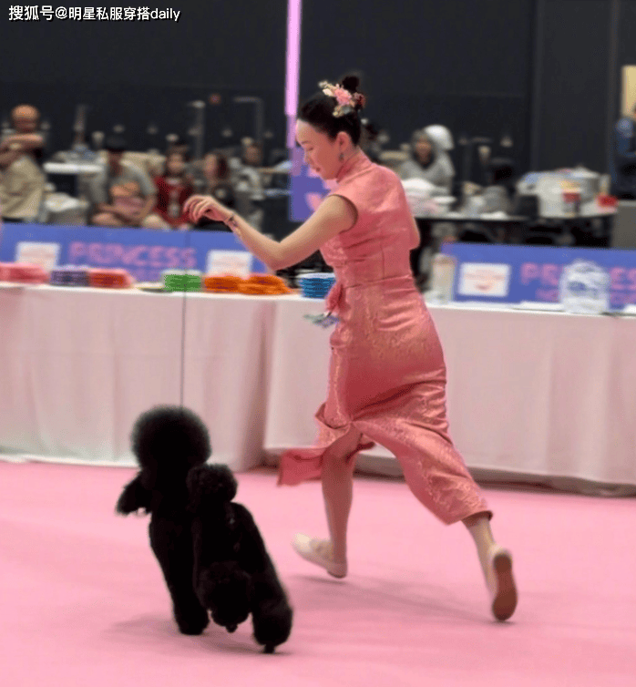 最近她带着中型贵宾爱犬“霍蜜蜡”勇闯泰国,征战为期三天的泰国“公主杯”国际犬展再夺冠,身穿一袭粉色旗袍珠圆玉润,妥妥人间富贵花!