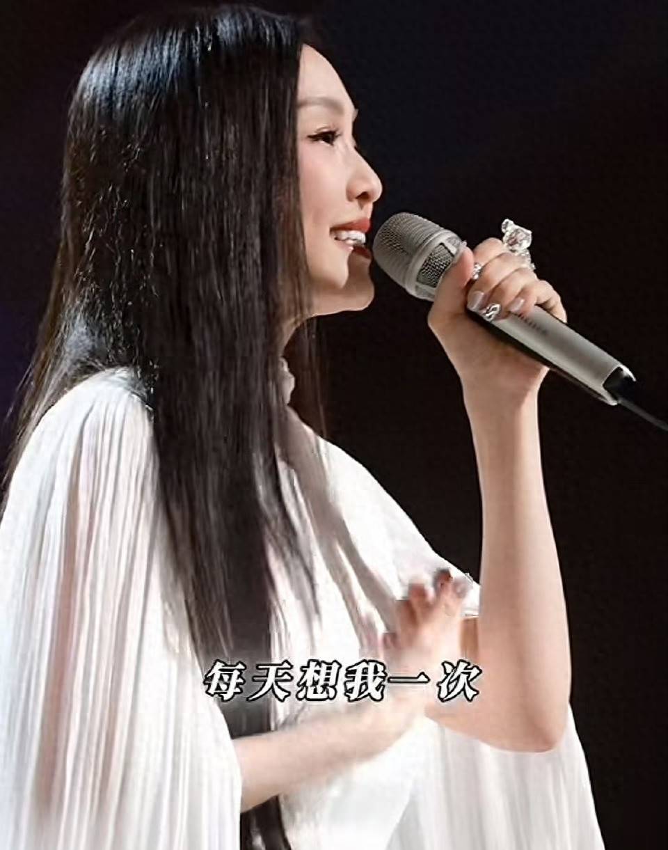 去年的演唱会上,她状态松弛、满场跑、跟观众开玩笑、即兴改调——跟今天节目里判若两人。