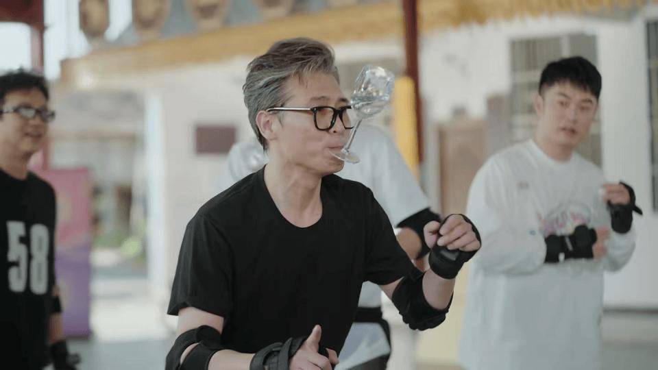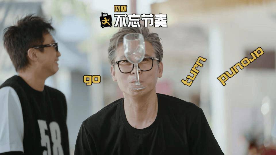 随后的旱冰鞋接水互动中,李乃文坚持执行这套行走方法论,一边小步“蹭”着前进,一边小心翼翼地传水,整体看上去笨拙得像个刚学走路的企鹅,却又有着莫名的执着和认真。